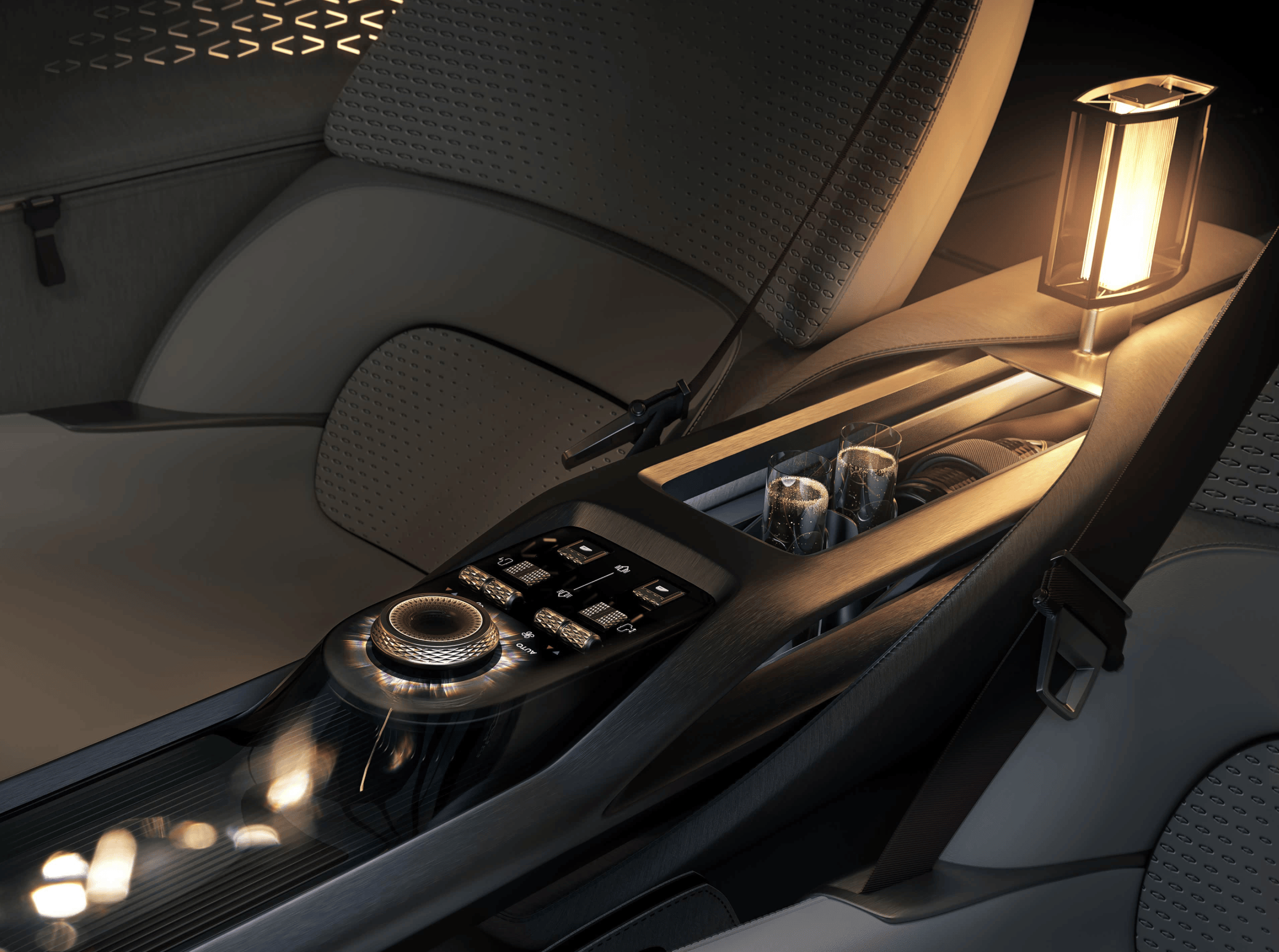 内饰堪称移动的艺术殿堂。酒红色诗米安材质与棕黄色装饰条交织,搭配实木饰板、丝绸斜纹布及编织金属等高端材质,营造出奢华而不失温馨的座舱氛围。翻毛皮方向盘集成钛金属换挡拨片,12点方向点缀黄色元素,致敬超跑设计语言。可旋转全宽数字仪表盘与可翻折中控大屏构成双屏交互系统,下方保留三个圆形指针仪表及复古机械表,形成传统与现代的碰撞。换挡区域采用精密机械按键布局,副驾驶座椅支持360度旋转,配合加热/通风/按摩及多向电动调节功能,将舒适性推向极致。